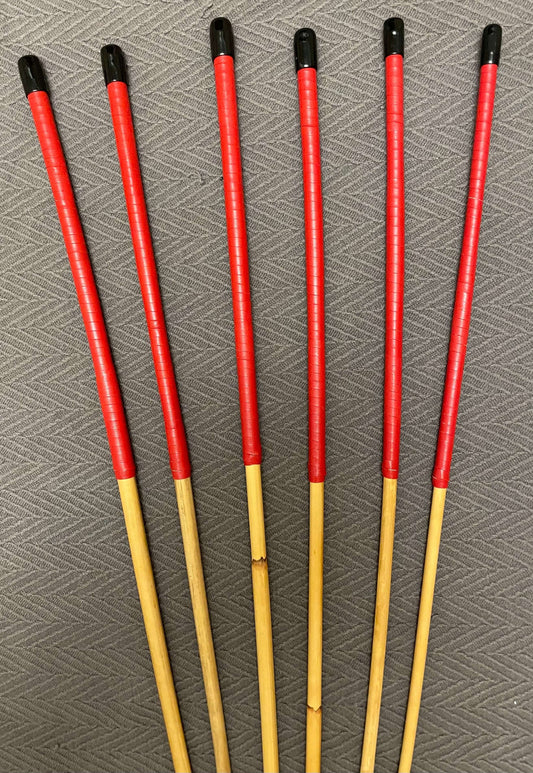 ProDomme Deluxe Set of 6 Natural Dragon Rattan Punishment Canes / School Canes / Whipping Canes - PRO SET - 100 cms Length - 14" RED Kangaroo Leather Handles