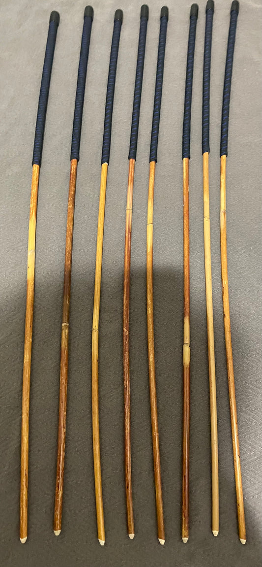 SALES SPECIAL Set of 9 Natural Dragon Rattan Punishment Canes / School Canes / Whipping Canes - SECONDS SET - 95 cms Length - BROWN HANDLES