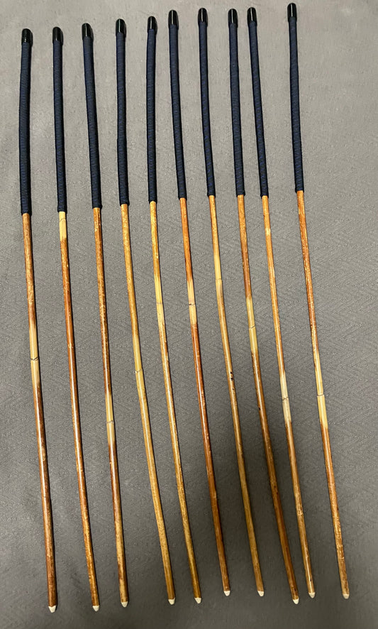 SALES SPECIAL Set of 12 Natural Dragon Rattan Punishment Canes / School Canes / Whipping Canes - SECONDS SET - 95 to 100 cms Length - BLACK PARACORD HANDLES