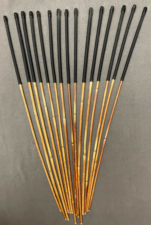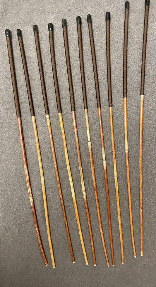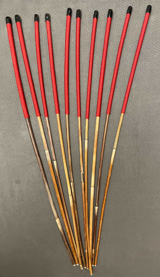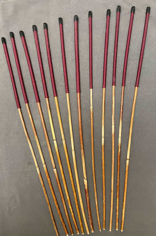 SALES SPECIAL Set of 12 Natural Dragon Rattan Punishment Canes / School Canes / Whipping Canes - SECONDS SET - 95/100 cms Length - BURGUNDY HANDLES