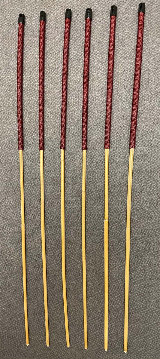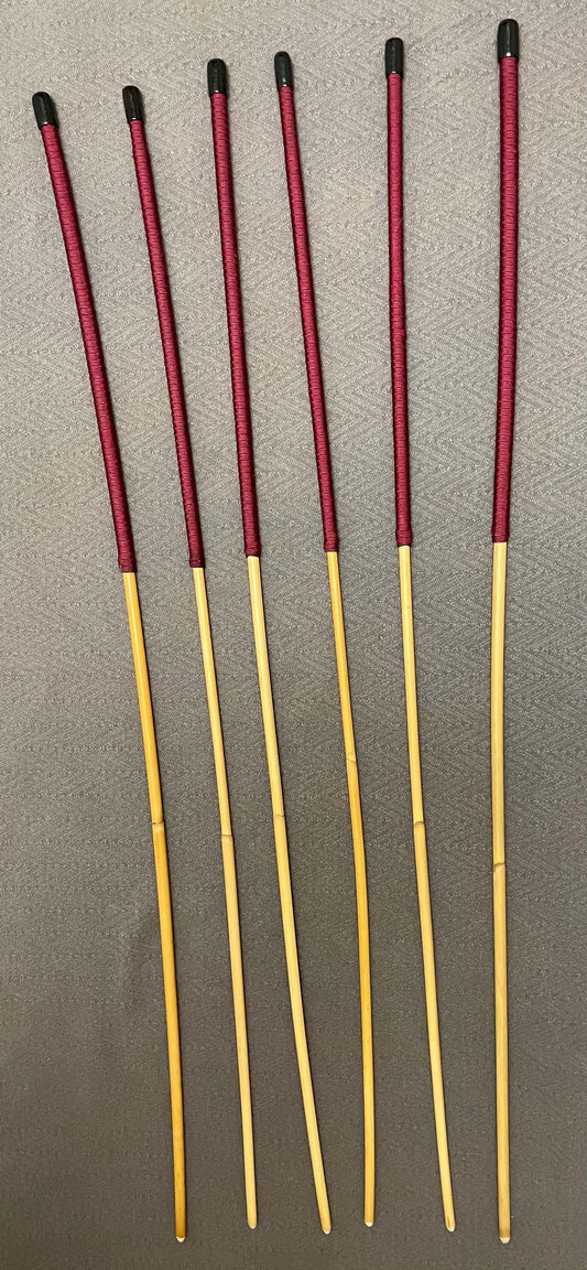 Whippy and Thin Natural Dragon Rattan Canes / School Canes / Whippy Canes Set of 6- WHIPPY AND THIN SET - 95 cms Length - 14" BURGUNDY HANDLES